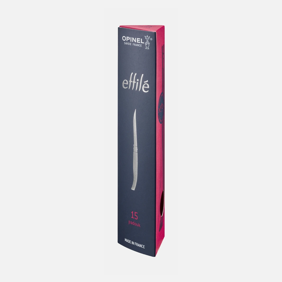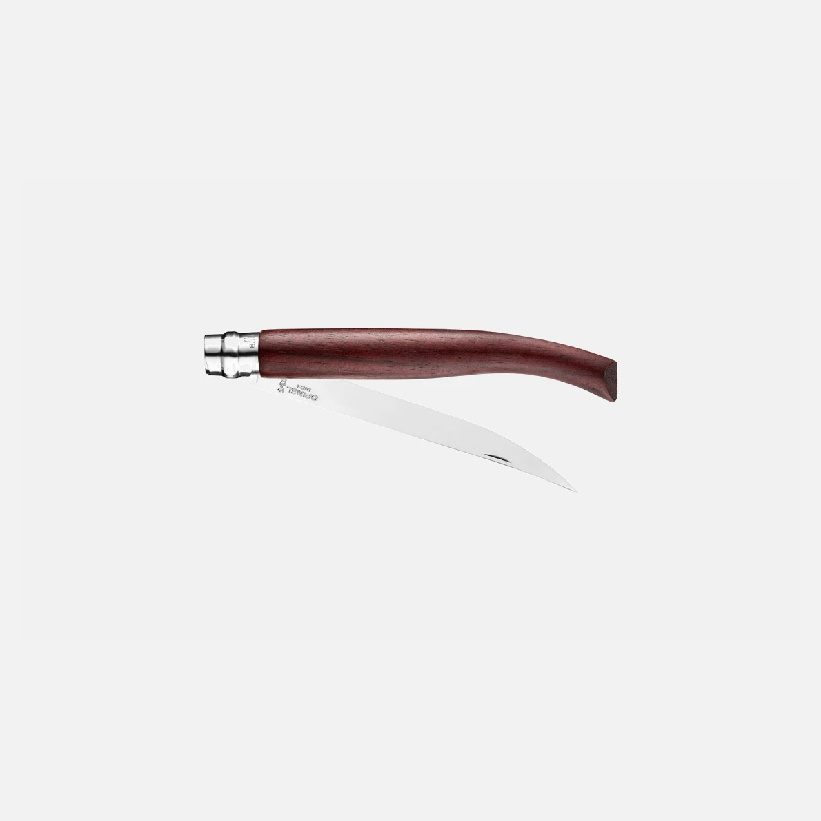 El Estilizado 15 es un cuchillo único, reconocido por su delicadeza y precisión en el corte, por ejemplo, para filetear pescado. Con su mango de padouk, es resistente a la humedad. Su hoja de pulido espejo de acero inoxidable mide 15 cm. El anillo de seguridad Virobloc lleva estampado el nuevo logo de la gama Estilizados.